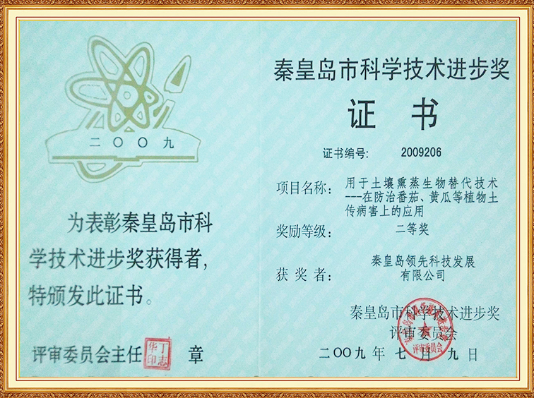 土壤熏蒸在防治番茄、黃瓜土傳病害上的應用—秦皇島科學進步二等獎