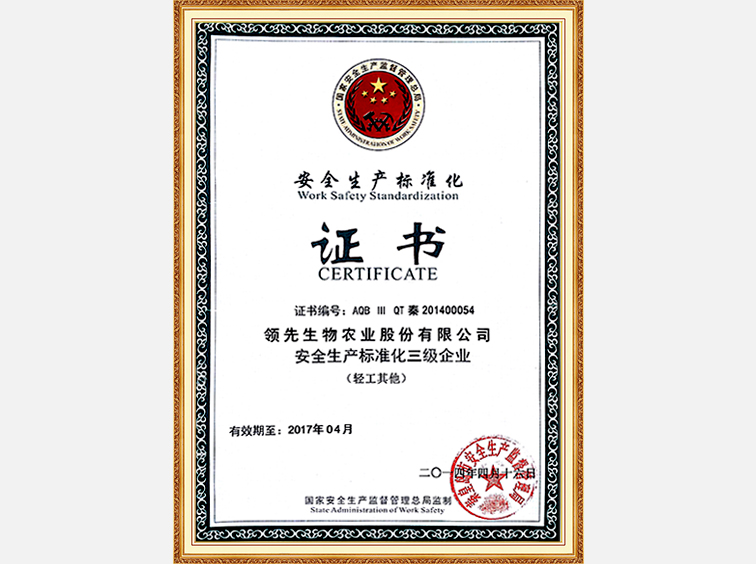 安全生產標準化企業(yè)證書